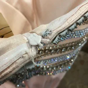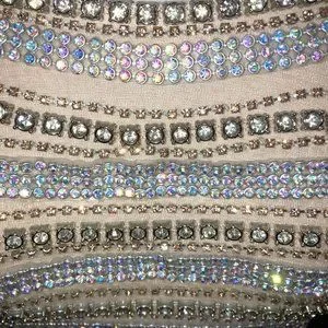 See size chart for measures. Sizes run small, so recommended to go up a size from your "regular" size. New w/ tags, but tried on as a samples. Great shape, see pics for details (some beads need re-attaching on each size from zipper use, may need extra hook or eye, slight snag in fabric). Priced accordingly