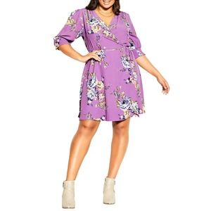 NWT City Chic Rose Garden Puff Sleeve Wrap Dress Women's Plus Size 18