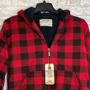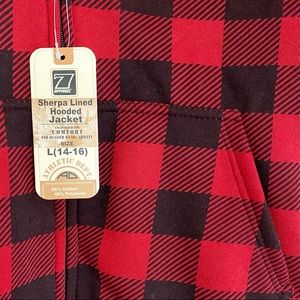 NEW Seven Apparel Red and Black Check Jacket w/Hood Sherpa Lined L (14/16)