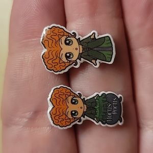 Cute little Winifreds in subtly mismatched studs.. (she has a witch's cauldron that says Hocus Pocus in front of her on one earring)