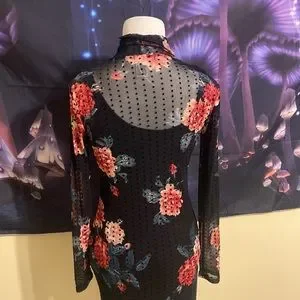 Never worn!!! This dress is sexy, or can be worn with stockings. Sheer with slip attached. Size small. Gorgeous for any occasion. Thanks for taking a look