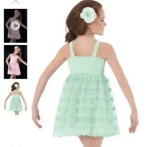 Day dress made of matte nylon/spandex with a shirred soft tulle overlay