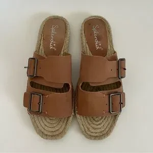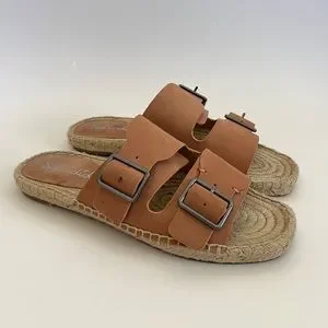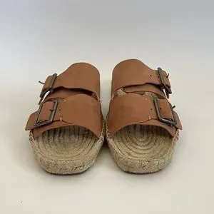 Splendid Blake Buckle Strap Leather Espadrille Slip On Sandals Anthropologie 8.5