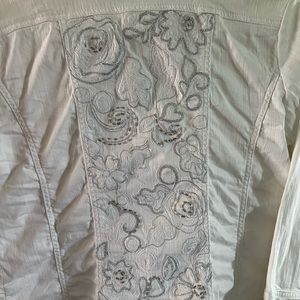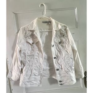 Chico's Platinum Y2K White Denim Jacket with Beaded Detailing