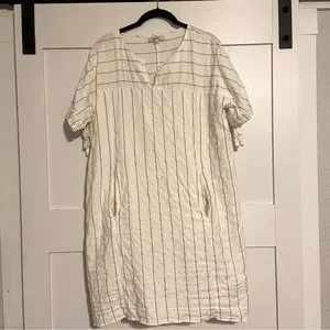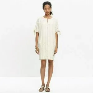 Like new condition! Madewell Tie-Sleeve Dress Size Medium Retail Value $110 Style #C6364 "A slip-on mini dress in soft yarn-dyed striped cotton. Ties on each sleeve make it feminine (but completely unfussy)." Shift dress silhouette. Length: 32" Armpit to Armpit: 21" flat across 100% Cotton
