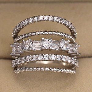 "Latest Design 925 Silver Plated White CZ Wedding Ring, FB16FA1133