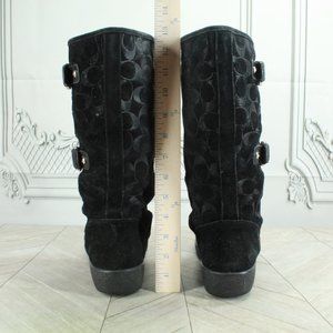 Coach Tinah Monogram Black Suede Lined Buckle Mid Calf Boots Size 7.5 B