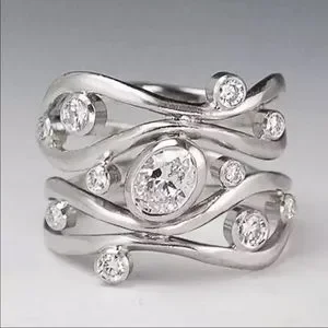 New Women’s 925 Silver MultiLayer Diamond Ring