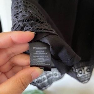 Solid black shirt with lining, embroidered down the sleeves and at the bottom. Has elastic at the neck and bottom of sleeves. 100% rayon Meant to be worn off shoulder, but not necessarily. Bundle and save.