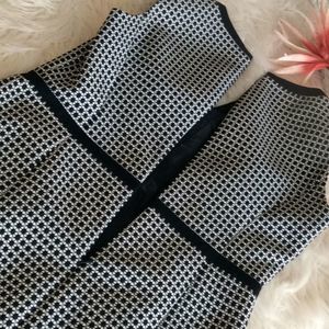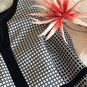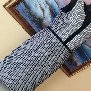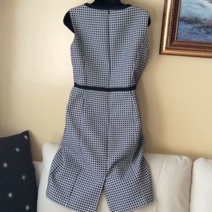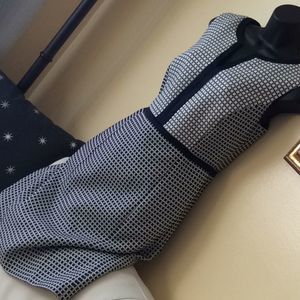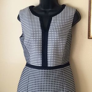 Business or night out,Gorgeous dress Excellent preowned condition,shoulder to shoulder 14,5”, armpit to armpit 19”, length 39”, color dark blue with white