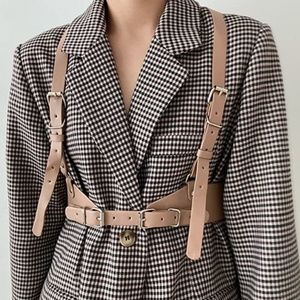 Punk Belly waist body chain black leather goth belt harness for women with strap