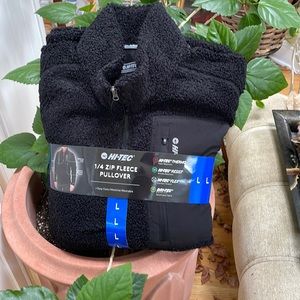 Mens- Black Size Large Hi - Tech 1/4 Zip Fleece Pullover Jacket. Machine Washable.Brand new- in orginal packaging. Please see photos for features