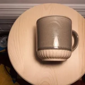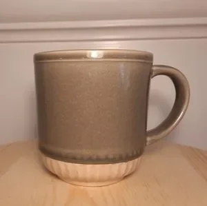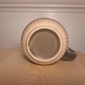 Delightfully sized and perfectly weighted coffee or tea mug. Scalloped pattern on natural clay on outer bottom. Vintage.