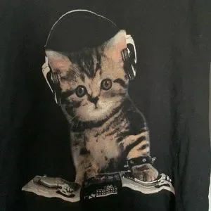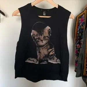 Vintage forever 21 cat d.j. Tank M preowned please let me know if you have any questions this is super AWESOME for any cat lover and dj lover super epic thank you