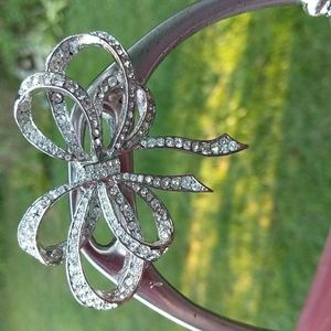 Authentic English Riding stirrup repurposed and upcycled into this one of a kind piece of art using vintage to now silvertone and rhinestone jewelry and components, permanently adhered to the stirrup with industrial adhesive.