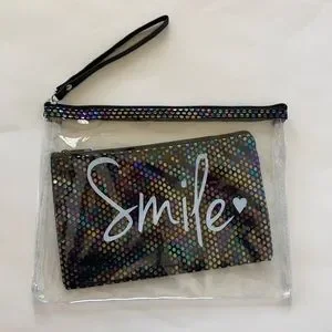 Black ‘SMILE’ Cosmetic/Travel Bag Set. Super cute and fun. Great gift idea!