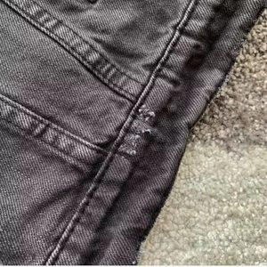 This awesome denim oversized jacket features a colorful embroidered boho design on the backside. Faded distressed black denim. This is not by Free People.