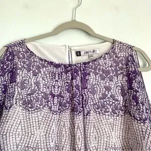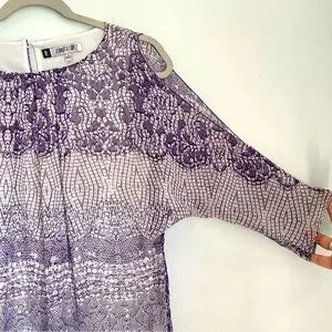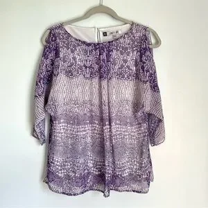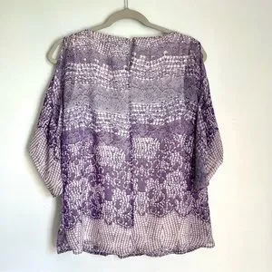 Jennifer Lopez Flowy Sequined Mosaic Cold Shoulder Blouse Women’s Small Purple