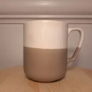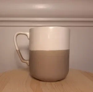 This pair of two-toned, modern ceramic mugs are a perfect size and weight for morning coffee. In great pre-owned condition with only a few marks, no chips. Modern, geometric. Sold as one pair ("one" below refers to one pair). Brand: Project 62