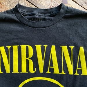SOLD Nirvana Oversized Distressed Retro Wash Classic Smile Logo Rock Grunge Tee