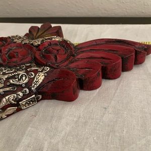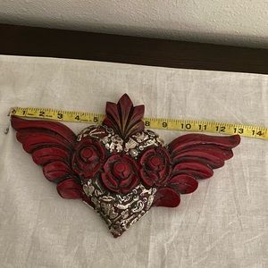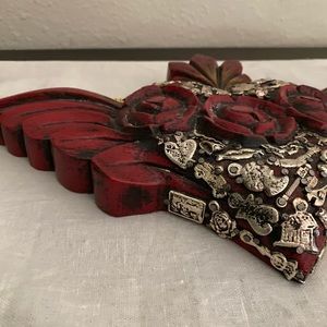 Beautiful wooden carved heart with silver charms called miracles.