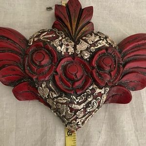 Mexican hand carved heart with little silver miracles charms