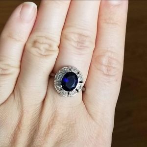 New 925 Silver Oval Cut Blue Sapphire Diamond Ring for Women