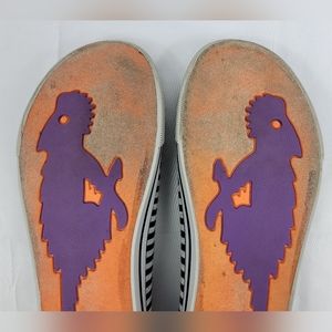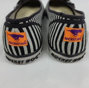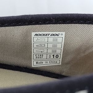 This pair of Rocket Dog shoes are gently used with light normal wear. The shoes are synthetic upper, foam insole, and rubber outsole. These fit a women's size 10.