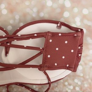 Brand new with tag AND detachable strap that goes around your neck. Back straps are adjustable and comes with padded cup for push ups 😊 Comfy! The mauve and white polka dot is super cute.