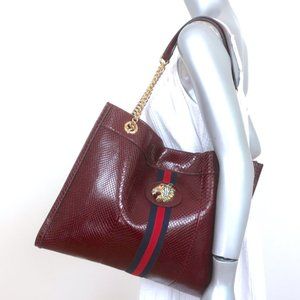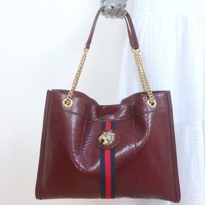 GUCCI RAJAH PYTHON MAXI TOTE BORDEAUX CHAIN STRAP SHOULDER BAG