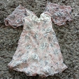 This cute floral romper has a deep V neck and cool cut out sleeves. was worn once on vacation and never used after that
