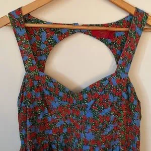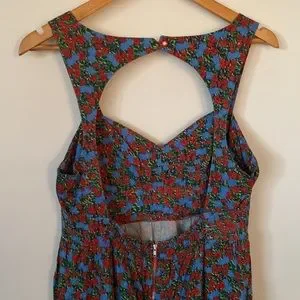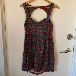 Pre Owned Tigerlily Womens Dress in Floral pattern. Made from 100% Rayon and is lightweight. Would be perfect for Spring/ Summer season. Has back cut outs as pictured. Fits size AU 14. Has elastic back and back zip as closure. Measurements when laid flat: Chest 35 cms Pit to Pit 45 cms Waist 42 cms Length 87 cms. Pls refer to photos for other details.