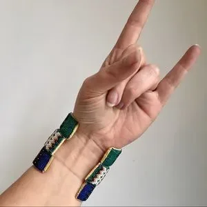 Native American Artist Beaded Bracelet BLUE Print