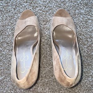 Jessica Simpson Amandax tan suede platform peep toe heels NWOT