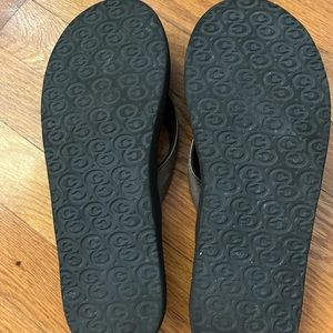Size 9 mean flip flops, brand Cobian. Dark brown thong style. Almost new.