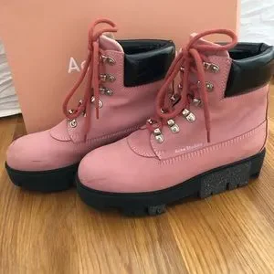 Acne Studios Telde Hiking Boots in Bubble Pink/ Black size 38