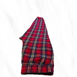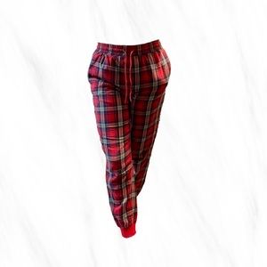 Here are some red, black, yellow, white plad cozy unisex sweatpants from dip they are used and still in good condition