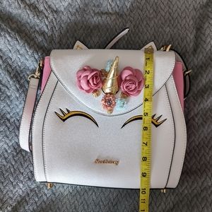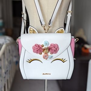 Can be a shoulder, crossbody, or backpack. The straps are on the long side for a backpack, though (see pictures). Never used, comes with dust bag. Faux leather.