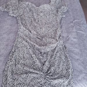 Ruched pebble white &black dress