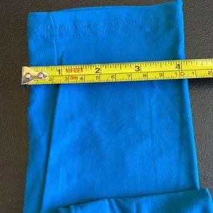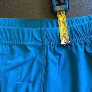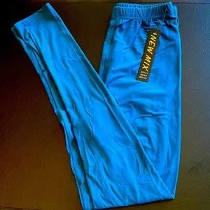 ONE SIZE NEW MIX LEGGINGS. BLUE/GREEN. A turquoise look to me. STRETCH. DOUBLE STITCHED. New SEE THE PICTURES FOR MEASUREMENTS AND TAGS AND WASHING INSTRUCTIONS. BOX 2 LEGGINGS.