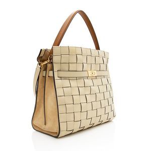 Tory Burch Leather Lee Radziwill Woven Double Satchel