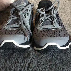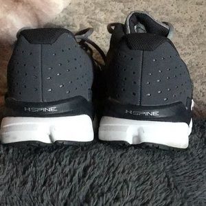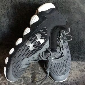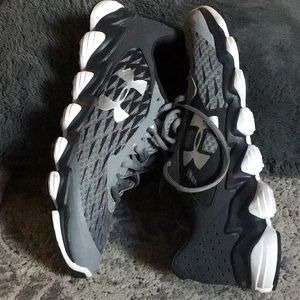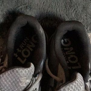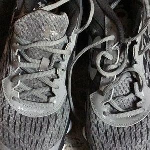 Mens Under Armor long run sneakers with front tie-up lace/size 11.5/color gray rubber under sole in excellent condition/only worn once/In excellent condition