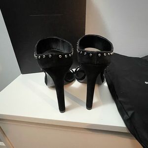 Mica mule only tried them on in the house they’re brand new. Heal is about 4 inches.
