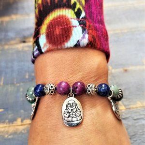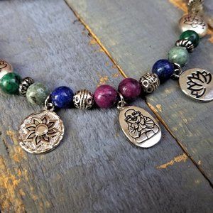 Artisan Hand Crafted Bracelet Stone Beads Buddha Lotus Flower Sunburst Charms