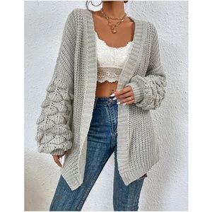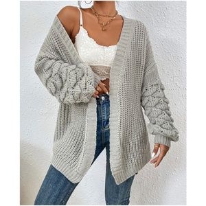 #18 Cozy Grey Open Front Pom Pom Sleeve Cardigan