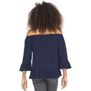 Embroidered Ruffled Hem and Cuffs Off Shoulder Top