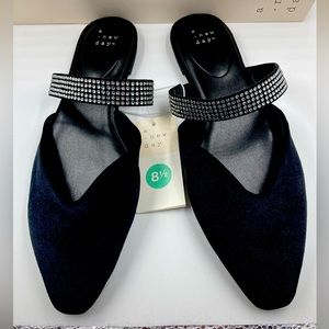 A New Day Maxine Flats Shoes Black Velvet Size 8.5 Rhinestones Memory Foam