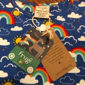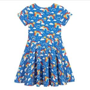 New with original tags rainbow and cloud print skater dress made of super soft, stretchy organic cotton jersey. Rolled sleeves. I have multiple dresses, in sizes 4-5 years and 7-8 years.