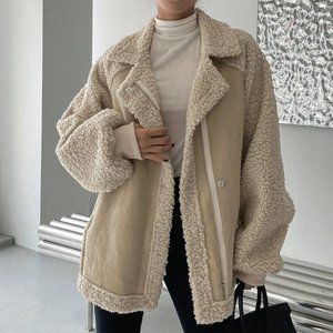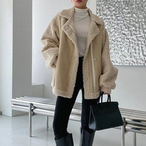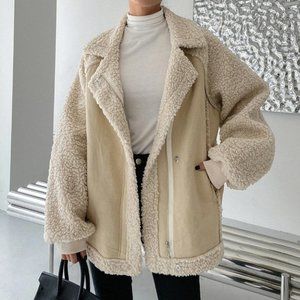 khaki "It coat" zip up faux suede teddy coat contemporary minimalist luxury