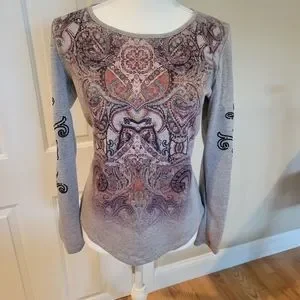 Gently worn, Excellent Condition! 98% Polyester, 2 % Spandex. Multicolor front with area of Studded detail. Non smoking, no pet household.